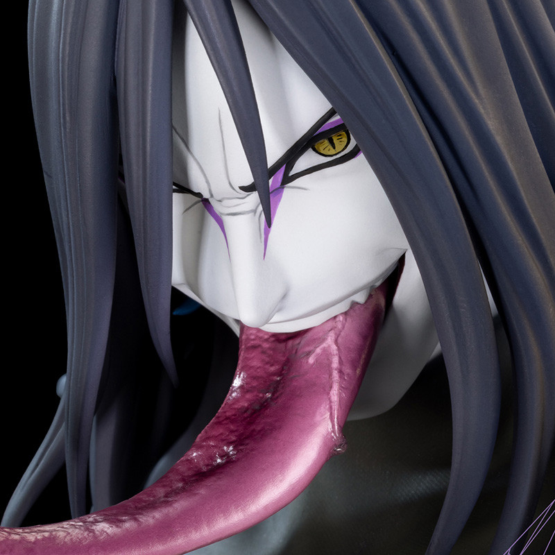 Fabriquée en résine (et autres matériaux), cette statue Orochimaru Bijutsu Tsume mesure 53 cm de hauteur par 32 cm de largeur pour 32 cm de profondeur .