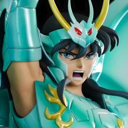 Shiryu déclenche sa célèbre attaque : la Fureur du Dragon. Un dragon sculpté en résine transparente matérialise cette technique, émergeant du sol et accompagnant le mouvement de Shiryu, s’élevant avec puissance vers le ciel.