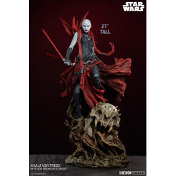 Fabriquée en résine à l’échelle 1/4, cette statue Star Wars Mythos Asajj Ventress Premium Format Figure Sideshow mesure 69 cm de hauteur par 43 cm de largeur pour 43 cm de profondeur.