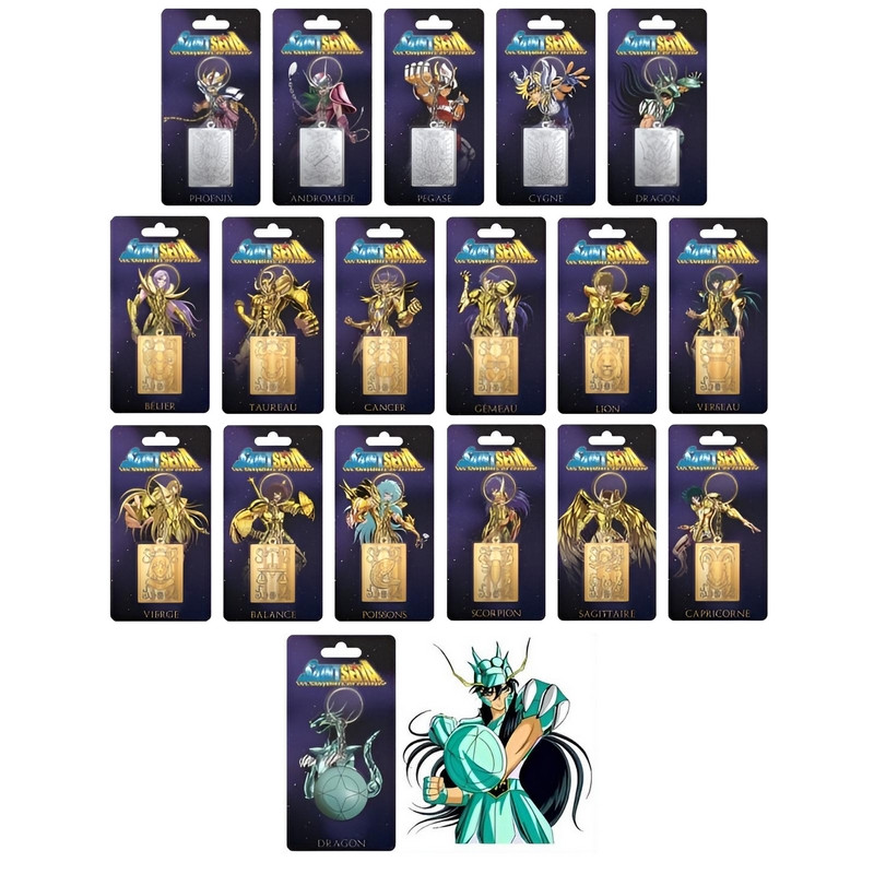 La collection se compose de 5 porte-clés dédiés aux Chevaliers de Bronze et de 12 porte-clés représentant les Chevaliers d’Or.
